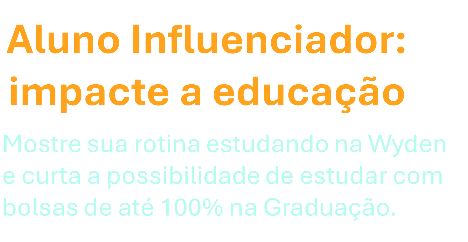 Bolsas de até 100% para estudantes selecionados com a oportunidade de aumentar visibilidade nas redes, concluir seus estudos e inspirar mais estudantes com sua trajetória.